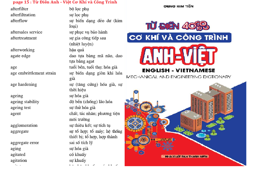 TỪ ĐIỂN ANH - VIỆT CƠ KHÍ VÀ CÔNG TRÌNH gồm 40.000 thuật ngữ các lĩnh vực cơ khí, máy móc, công trình giao thông, vận tải,xây dựng, thủy lợi .....